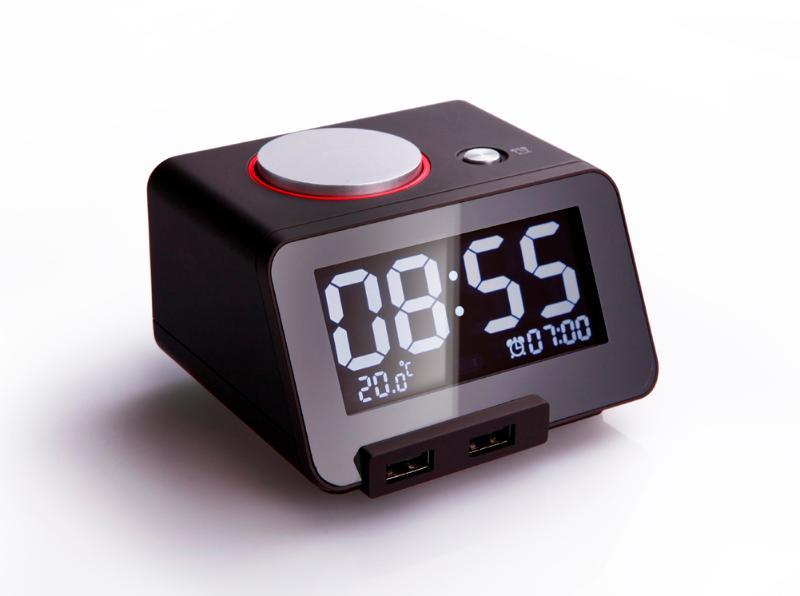 时光电栈C1美时床头台钟桌面摆件闹钟带USB充电口创意礼物充电器